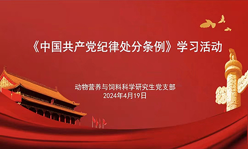 4月19日,公司动物营养与饲料科学研究生党支部在腾讯会议开展研究生党纪学习启动大会,本次会议由支部书记郭咏梅主讲,党支部全体成员参加,党支部副书记贾宇达主持。