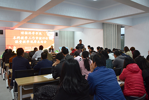 会议伊始,张经理首先对上周的课堂观摩情况进行了概括总结,并对下周的教学工作进行了安排。会议中,动物遗传育种系主任赵艳红、动物营养系主任李大彪、动物生产系主任史彬林、水产养殖系主任乌兰主任分别对上周的课堂观摩情况进行了详细总结,提出了一些教师存在的问题:幻灯片制作不规范、课堂上与同学互动少、讲课时逻辑性不强等,并由办公室行政组长王志英进行补充。最后,王书记对早操的相关问题进行了总结并强调了早操对老员工活的重要意义;齐经理则对主任们的总结进行了进一步的评析并鼓励大家积极弥补不足。