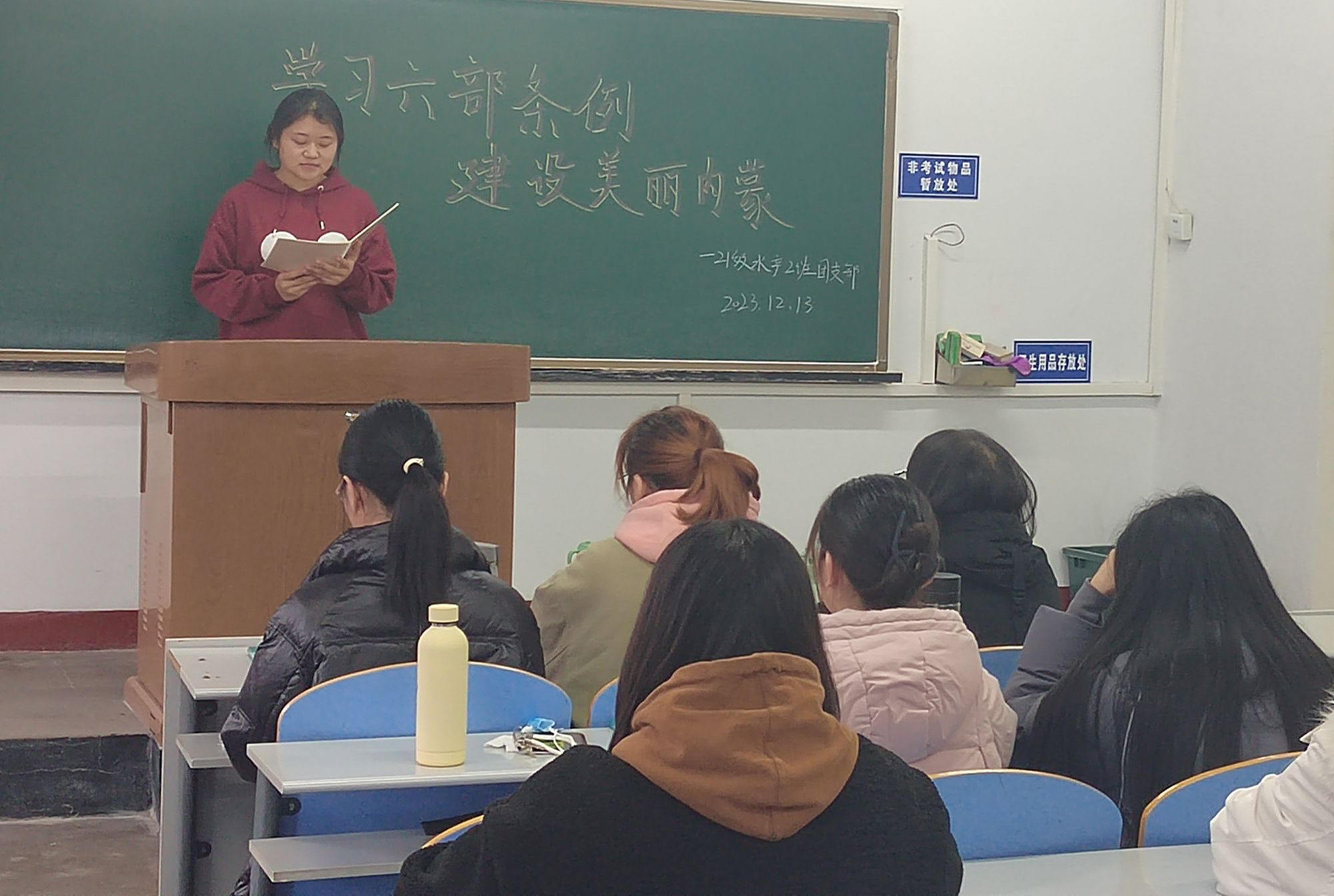 为深入学习宣传习近平总书记对内蒙古的重要指示,加强对同学们的思想教育,引导青年员工热爱内蒙古、扎根内蒙古,12月13日,公司21级水产二班在勤学楼321教室开展“学习六部条例,建设美丽内蒙”主题团日活动,本次活动由21级水产二班全体同学参加,团支书苏哲主持。