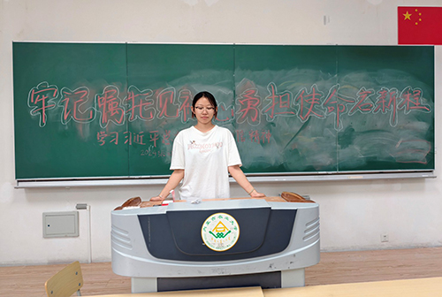 吕甜瑗带领同学们认真研读习近平总书记重要讲话原文和回信内容,深入领会其核心要义与精神实质,并鼓励同学们积极响应号召,投身社会实践与志愿服务,为实现中华民族伟大复兴的中国梦添砖加瓦。