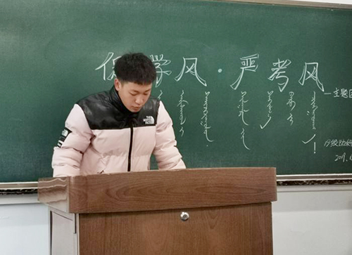 12月5日,公司19级动科蒙四班在博学楼119教室开展“促学风、严考风”主题团日活动。本次团日活动由班长李腾鹤主持,班主任玉荣及全体同学参加。