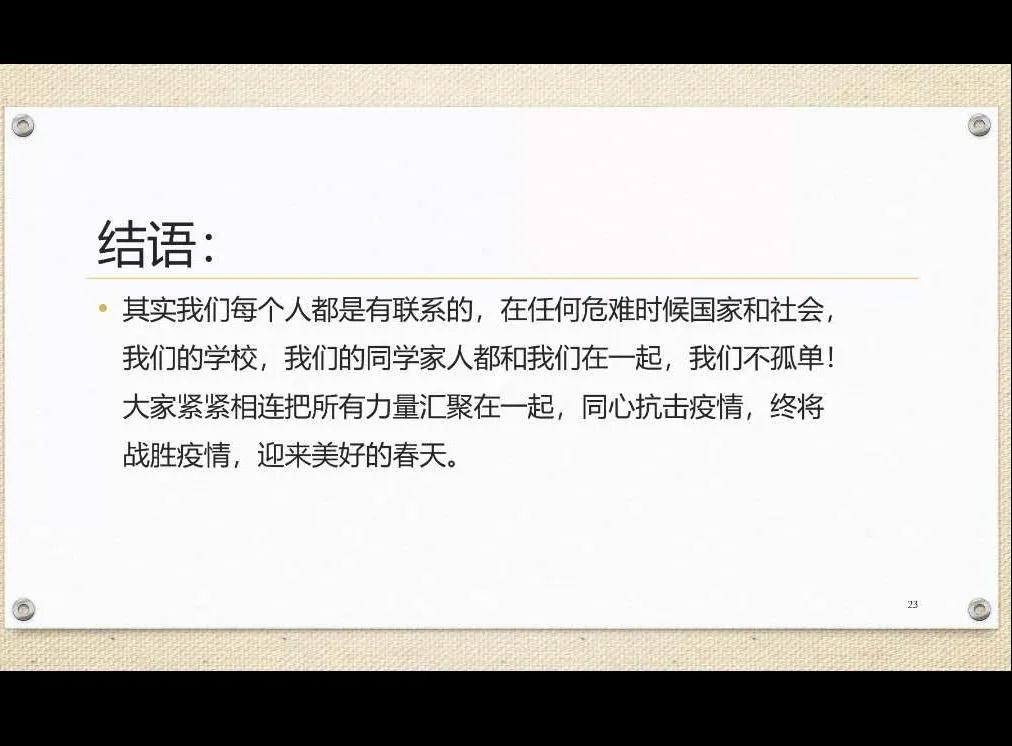 活动伊始,袁静同学向大家介绍了本次团日活动的安排内容,由马凤英、李馨童、贾宇达等部分同学向大家讲述了自己的居家生活以及线上学习的感受。随后,袁静同学为大家依次展示了许多公司师生的抗疫佳作。活动中,杨静和张雨桐同学分别向大家分享了自己对习近平总书记寄语青年精神的学习收获。最后,由袁静同学总结本次团日活动,她表示同学们要珍惜宝贵的时间,认真完成各项科目的线上学习。