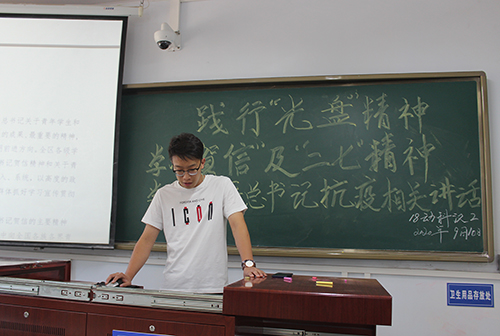 9月10日,公司组织17、18、19级各班开展“学习习近平总书记抗疫相关讲话及‘光盘’精神”团日活动。公司17、18、19级全体同学及各班班主任参加。