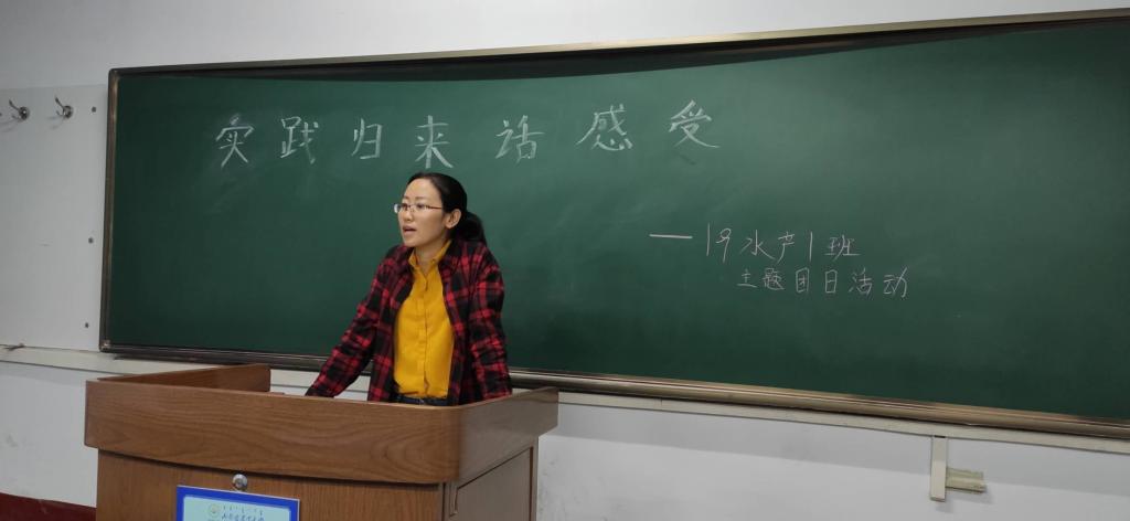9月24日,公司19级水产一班在博学楼106教室开展“实践归来话感受”主题团日活动。本次活动由团支书李茗荟同学主持,全班同学及班主任杨艳平老师参加。