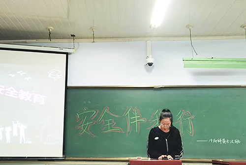 活动伊始,李媛同学表示此次活动开展的目的是为了增强同学们日常生活的安全防范意识以及提高应付突发事件的能力,她从防盗、消防、交通、防滋扰、国家安全、防抢劫、防诈骗和网络安全等方面展开讲解。期间,李媛同学组织大家分享自己的心得,使同学们加深对安全知识的记忆和理解。随后,班长马亦甜同学表示通过本次活动能提高大家自身的防范意识并提醒身边的同学家人重视安全问题。活动最后,班主任赵艳红老师对本次活动做出总结,同时希望同学们可以在本学期期末认真复习,迎接期末考试。