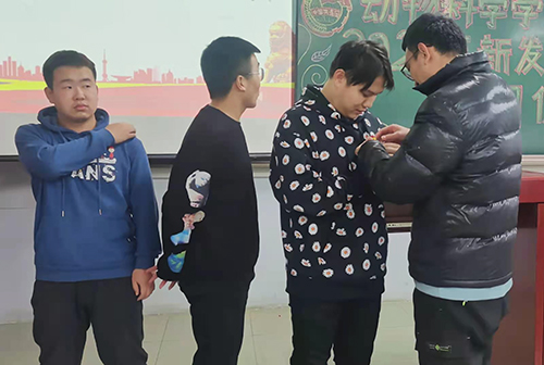 张永昌老师为团员佩戴团徽