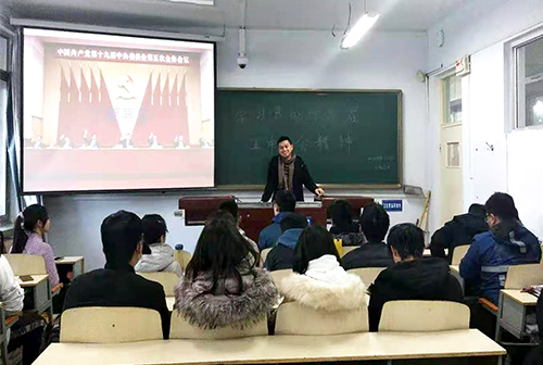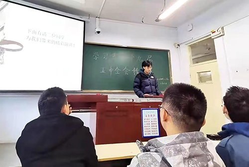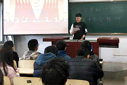 活动伊始,团支书周蔓为同学们详细讲解了关于党的十九届五中全会主要内容,强调同学们要有人与自然和谐共生的理念,做到尊重自然、保护自然、顺应自然和守住自然生态安全边界。随后,由三位同学分别围绕“学习贯彻党的十九届五中全会精神”提出全党全国各族人民要紧密团结在以习近平同志为核心的党中央周围,同心同德,夺取全面建设社会主义现代化国家新胜利。活动最后,班主任张心壮老师和班长高崟纶分别对本次团日活动做出相关总结,希望同学们深刻贯彻党的十九届五中全会精神,解读党的思想。