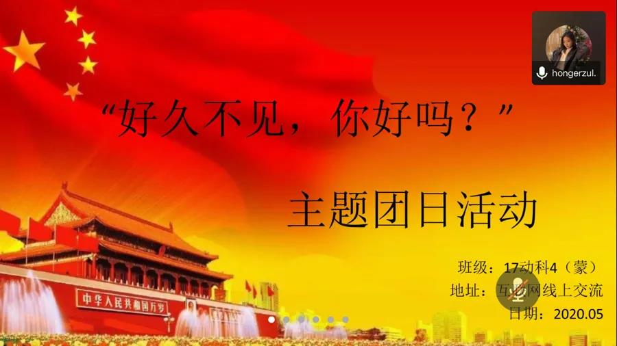 5月10日,公司17级动科蒙一班在腾讯会议上开展了“好久不见,你好吗”主题团日活动,本次活动由团支书红格尔卓拉主持,班级全体同学参加。