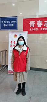 答:寒假期间,我积极响应公司及社区号召,报名参加了由武清团区委,区青志协开展的“青春志愿行,温暖回家路”春运暖冬行动,成为了一名“清青”志愿者,主要负责在武清火车站引导市民购票、取票及进出站;维护候车室、进站口和验票口秩序;引导市民保持安全距离,规范佩戴口罩;协助查验健康码,测量体温等。