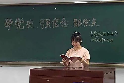 6月8日,公司20级动科正大班在博学楼112教室开展“学党史、强信念、跟党走”专题组织生活会。本次活动由20级动科正大班团支书贾紫淇主持,全体同学参加。