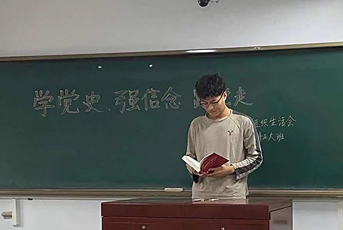 生活会伊始,贾紫淇说明本次活动旨在引导同学们学好党的历史,深刻理解党的基本路线,增强团员青年的责任感、使命感。随后,贾紫淇组织全体同学开展读书交流会,各宿舍派代表依次介绍《中国共产党简史》、《新中国极简史》、《中国共产党内蒙古历史》等书籍,带领同学们重温党史,感悟初心使命。生活会最后,全体同学合唱歌曲《没有共产党就没有新中国》,在歌声中感悟中国共产党的初心使命,坚定为党和国家的建造贡献自己的青春力量的决心。