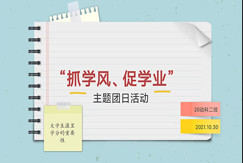 为响应公司号召,进一步加强学风建设, 10月30日,公司20级动科二班在腾讯会议开展“抓学风,促学业”主题团日活动,本次活动由团支书石荣主持,公司20级动科二班全体同学参加。
