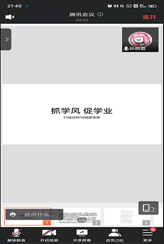 11月1日,公司21级动科十班在线上开展“抓学风,促学业”主题团日活动。本次活动由团支书孙晓霞主持,公司21级动科十班全体同学参加。