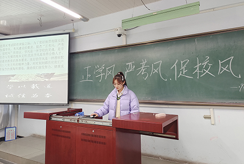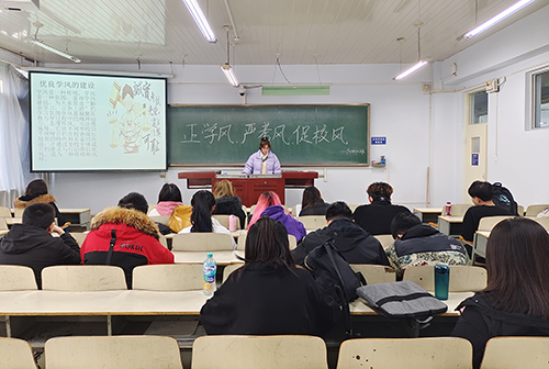 活动伊始,高菽阳从学风的概念切入进本次团日活动的主题,为同学们介绍建设优良学风的重要性。随后,高菽阳为同学们讲解考试注意事项,希望同学们以诚信考试为荣,以考试舞弊为耻,坚决抵制考试作弊的不良风气。活动最后,高静对本次活动进行总结,提醒同学们应当严肃考风考纪,认真对待考试,同时呼吁同学们端正自己的学习态度,将知识牢记在心。