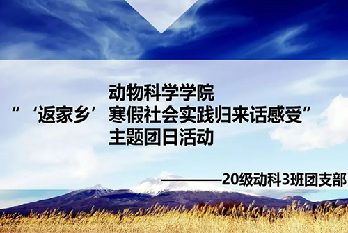 3月24日,公司20级动科三班在线上开展“返家乡寒假社会实践归来话感受”主题团日活动。本次活动由团支书张佳琦主持,公司20级动科三班全体同学参加。