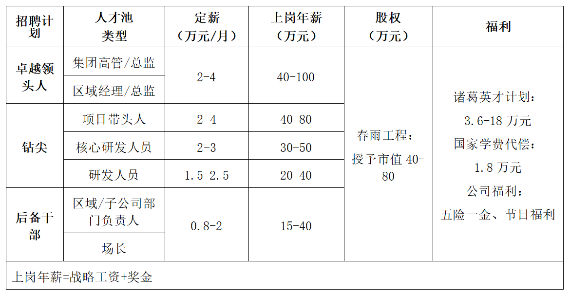 春雨工程:公司施行员工持股计划时,入职1-2年忠诚有潜力的老员工均有机会入选;