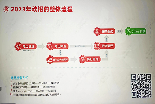 会议伊始,李俊良通过播放宣传片的方式向同学们展示伊利集团概况,并围绕企业文化、行业地位、技术部门、员工福利待遇等方面详细介绍相关企业信息,使同学们对伊利集团的了解更加充分。期间,往届员工代表冯博分享他进入伊利集团的心得,他表明伊利集团以产品事业部需求为核心,保障高品质、多样化原奶的持续稳定供应,有着全面的奶牛养殖技术服务、专业的牧场智慧化管理、先进的技术服务和顶尖的专家技术团队,为同学们提供了良好的工作环境。同时,冯博提到伊利拥有充满挑战性的成长空间、制定化的培养方案和多样的员工关爱,为他的职业发展提供了平台。会议最后,韩煦对有意向的同学进行现场招聘,她希望应聘的同学具备积极进取、行动力强、有创造力且热爱学习的品质,能够在实践中培养自己的创新能力、抗压能力和学习能力。