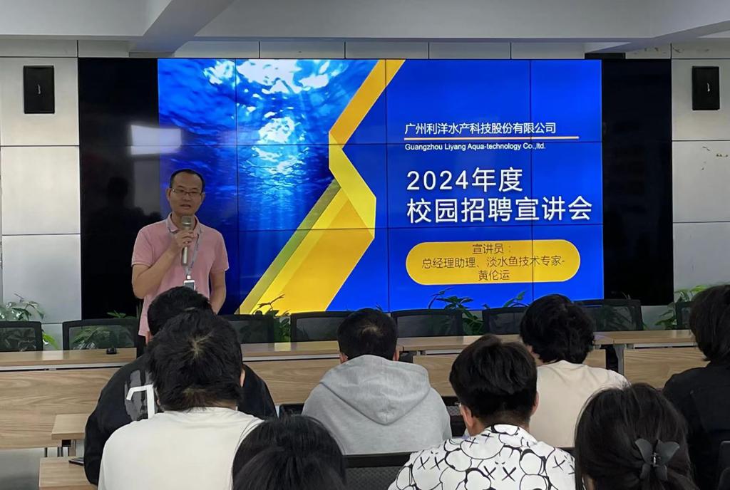 9月19日,广州利洋水产科技股份有限公司在公司动科楼501会议室开展招聘宣讲会,本次宣讲会由广州利洋水产科技股份有限公司总经理助理、淡水鱼技术专家黄伦运主讲主持,公司部分同学参加。