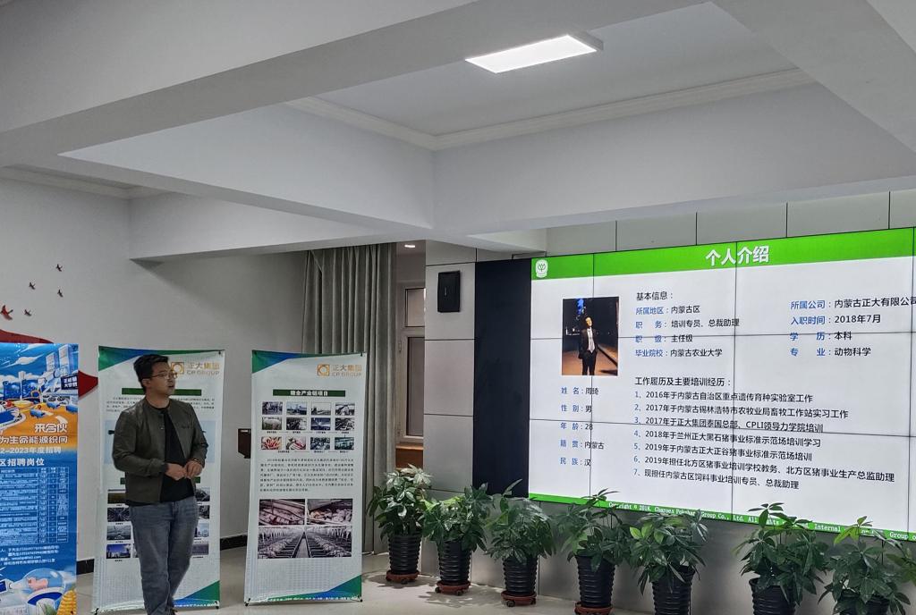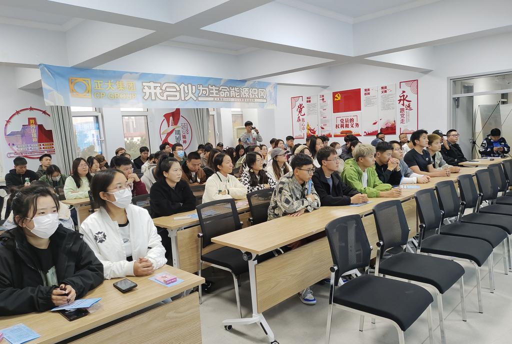 会议伊始,于博丞讲述毕业生就业的紧张状态及如何准确定位自己选择一个好公司。随后,于博丞从集团的发展历史,业务板块,以及公司于内蒙古的业务分布与发展,对正大集团进行了详细的介绍。会议中,优秀员工周琦分享了自己选择正大集团的原因、在正大的生活及个人入职感想,希望同学们通过本次宣讲会接近企业、了解行业,及时明确目标。期间,周琦向同学们详细介绍了正大集团的岗位布局、发展规划、人才培养体系、员工福利等方面,鼓励同学们勇于尝试,成就更好的自己。会议最后,同学们积极发言、踊跃提问。于博丞就岗位情况、工作地点等大家关心的问题一一答疑解惑,与同学们进行充分交流。