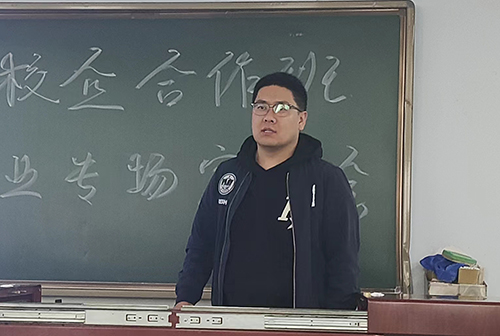 会议伊始,杜明指出本次会议旨在明确员工未来就业方向,帮助员工了解本专业的就业岗位以及要求。会议期间,张乐与同学们交流互动,询问其就业意向以及发展方向,同时为同学们介绍正大集团的就业岗位,并询问同学们对于未来工作的期望。会议中,于博丞向同学们详细介绍集团提供的就业岗位以及应聘要求,并询问同学们在实习过程中的感受,深入了解同学们的需求。随后,张乐向同学们介绍正大集团的发展历史、成就、以及产业,详细介绍正大集团的人才梯队及培训体系,帮助同学们更好地了解正大集团。会议最后,杜明对本次会议进行总结,提醒同学们就业要有选择性,慎重考虑,选择适合自己的岗位,避免盲从心理,错失机会。