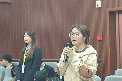 会议伊始,青林对参会嘉宾进行简单介绍,阐明本次会议的重要性和目的,并对王铭铭一行人的到来表达热烈欢迎。随后,王铭铭播放企业宣传片,并从中粮集团的历史、中粮家佳康有限公司的概况、福利与职业发展和岗位需求及应聘方式四个方面进行阐述,使同学们对中粮家佳康有限公司有了初步了解。会议中,包文杰介绍自身成长及就业经历,并说明中粮家佳康有限公司具有良好的工作氛围,同时提醒同学们要重视企业的选择,设定长远目标,明确未来发展方向。期间,王铭铭以问答的形式与公司同学进行互动,同学们积极回应,营造了良好的交流氛围。会议最后,王海森对本次会议进行补充,他阐述了公司岗位需求、各岗位工作内容、投递简历的方式及截止时间,并对同学们提出的问题进行回答,帮助其进一步了解企业的相关内容。