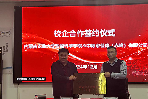 行动伊始,中粮家佳康(赤峰)有限公司负责人对包国荣一行的到来表示热烈欢迎。随后,企业负责人带领公司人员参观企业,使其对企业的先进生产设备、严格的质量管控体系以及高效的运营模式有了初步的认识和了解。随后,包国荣详细介绍公司在创新科研、团队建设、人才培养等方面取得的成绩,对公司未来的发展方向和目标进行阐述,并希望能与企业建立长期稳定的合作关系,共同培养符合市场需求的高素质人才。期间,企业负责人介绍中粮家佳康(赤峰)有限公司的历史沿革、企业文化及行业发展现状,并希望与公司深入探索创新合作模式,推动校企合作向更深层次发展,同时打造具有特色的合作项目,为员工的未来发展提供更广阔的平台。此外,企业代表孙安达、乌云嘎、金峥嵘、乔玉成汇报其工作情况,使公司更加直观地了解到毕业生在企业的工作内容和发展前景,同时有助于校企双方更好地了解彼此需求,共同推动人才培养和企业发展。行动最后,双方积极探讨、详细交流,同时包国荣与公司负责人签订校企合作协议并为就业实习实践基地授牌,共开发就业岗位15个,实习岗位20个。