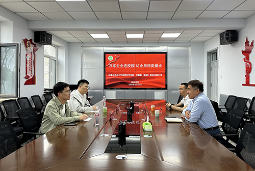 会议伊始,包国荣对双胞胎(集团)股份有限公司一行人的到来表示热烈欢迎,并详细介绍公司的发展历程、学科特色以及人才培养成果,他表示公司高度重视校企合作,希望通过开展宣讲会、双选会等多元化方式,为员工提供更多实践机会,为企业输送优秀人才,实现互利共赢。随后,程梦袁对企业的发展情况、业务范围及未来规划进行介绍,表达想与公司进一步深化合作的意愿,并对公司毕业生的情况进行询问,表明企业将为毕业生提供更多优质岗位。其后,青林重点介绍公司即将举办的双选会安排,并希望双方通过此类活动加强对接,为员工就业搭建更广阔的平台。期间,双方围绕人才培养、毕业生就业、员工实习等议题展开深入讨论,同时周宇结合自身经历,分享职场感受,现场氛围轻松而热烈,形成了思想碰撞、共谋发展的良好交流局面。