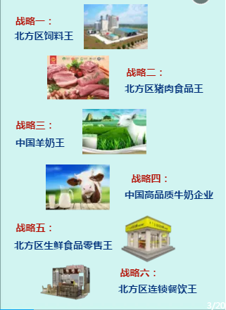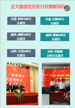 目前,北方区正在整合资源向国际现代化的养殖食品企业进行升级和转型,五年内,我们的事业规划:猪出栏600万头,肉鸡出栏7000万羽,蛋鸡养殖出栏1400万只,饲料420万吨,同时发展配套的屠宰、食品加工,食品终端,总投资达41亿人民币,真正实现农牧食品一条龙产业链,将健康、安全、美味的食品送到千家万户的餐桌上。