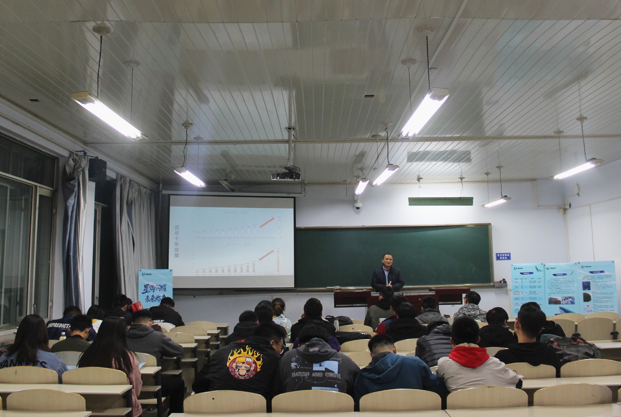 会议开始前,海大集团工程师崔相东播放了海大集团宣传片,展示海大集团立足农村,扎根农业的发展理念,让同学们了解到海大人的服务宗旨是帮助农民。会议伊始,崔工程师简单地介绍了海大集团的现状及未来的发展趋势,增加了同学们对企业的了解。随后,刘总经理以“星海闪耀,未来你来”为演讲主题,从“我们是谁”、“我们可以为你提供些什么”和“我们提供哪些就业单位”三方面介绍海大集团,并表明海大集团十分乐意接受“心怀梦想、锐意进取、坚韧不拔”的老员工加入到集团。会议最后,崔工程师对招聘职业做出详细介绍,并与刘总经理解答同学们所提的问题。