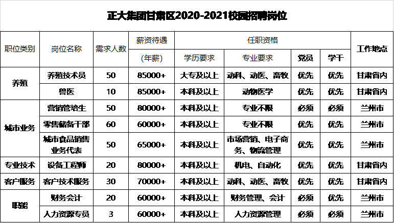 简历投递方式:关注人力资源部官微(正大集团甘肃区人力资源服务中心)