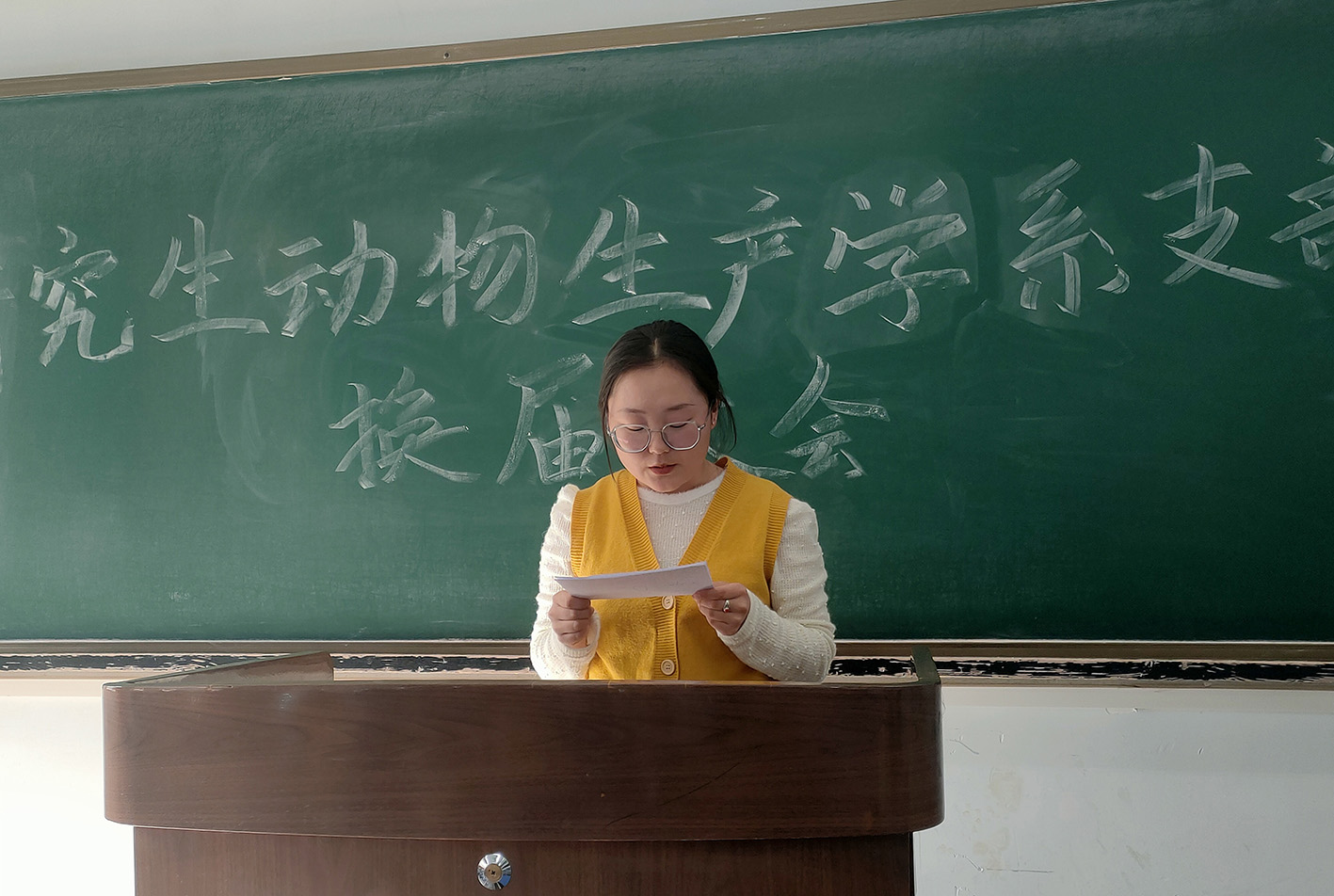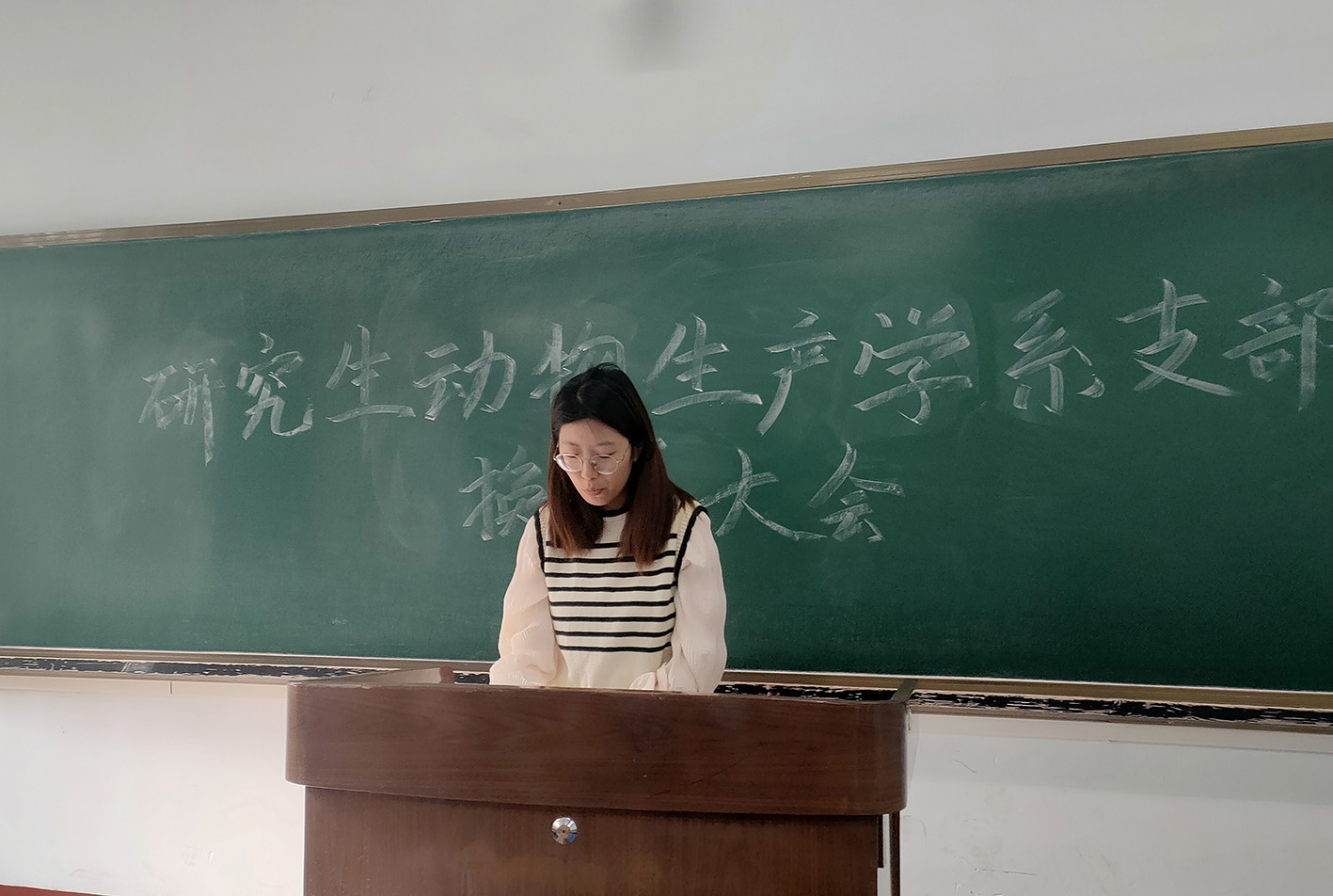 3月9日,公司研究生动物生产学系支部委员会在勤学楼117教室开展换届大会,本次会议由研究生动物生产学系支部委员会书记青林及研究生动物生产学系支部委员会成员参加,党支部副书记董琛琳主持。