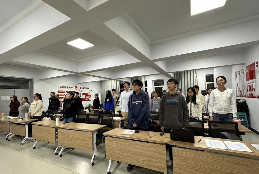 会议伊始,全体人员起立,奏唱国歌。随后,杨子谦介绍本次会议从党的重点培养对象宣读《入党志愿书》、正式党员无记名投票和支部宣布投票结果三个方面开展。