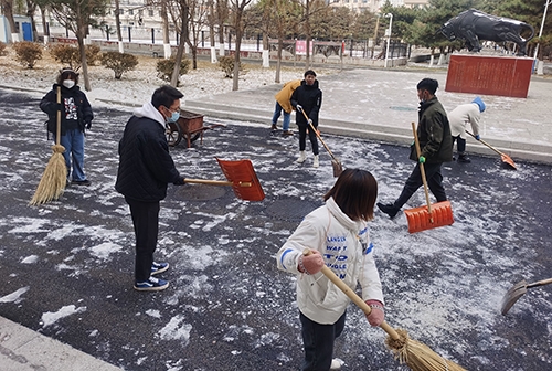 本次活动党员们用实际行动为校园和师生们办实事,自愿投身于除雪劳动。活动中,党员们分区域进行铲雪,他们默契配合、分工明确、效果显著。活动期间,党员们不畏严寒、不畏艰难、干劲十足,有条不絮地进行着铲雪工作,将党史学习教育成果转化为服务人民群众的实际行动,增强了公司党支部的凝聚力和战斗力,展现了公司党员无私奉献、团结奋进的良好风貌。活动最后,党员们完成铲雪除冰工作,将除雪工具有序地放回原处。