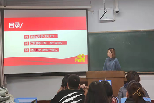 活动伊始,刘畅表明本次活动旨在缅怀革命先辈的丰功伟绩,传承红色基因。随后,李丽介绍先辈英勇事迹,讲述了革命先烈母亲王老太太经历丈夫遇害、国家被侵占后举家抗日的故事,展现了王老太太平凡伟大的英雄母亲形象,充分体现了抗日者英勇无畏的精神。期间,李丽概述了李井泉司令挺进大青山,取得绥西三战三捷的故事,展示了一位优秀政治工作者和杰出党员的伟岸形象,使同学们深刻体悟共产党员艰苦奋斗的精神。期间,李丽提到同学们应当饮水思源,继续发扬艰苦奋斗的优秀传统。活动最后,刘畅对本次活动进行总结,希望同学们认真学习各项实用技能,用优异的学业回报社会,为祖国的繁荣昌盛贡献自己的力量。