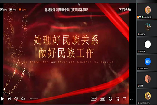 培训伊始,党员服务站成员史越说明线上学习得分要求,提醒同学们应注意出勤、纪律等问题,并提到本次培训课应斯日古楞书记要求,线上教学改为线上视频学习,使同学们进一步贯彻落实习近平总书记在中央民族工作会议上的重要讲话精神,深刻领会铸牢中华民族共同体意识的重要要求。视频中,主讲人赵金辉开篇提到习近平总书记关于加强和改进民族工作的重要思想,并结合史实讲明处理好民族工作的重要性。本次培训的内容共分为“铸牢中华民族共同体意识重大命题的提出”、“铸牢中华民族共同体意识及其内涵”、“铸牢中华民族共同体意识的实现路径”三个板块。期间赵金辉从“时代背景”、“现实背景”、“理论条件”以及“习近平总书记倡导民族团结方面的重要论断”四方面进行讲述,并结合大量史实阐述“铸牢中华民族共同体意识重大命题的提出”。培训最后,党员服务站成员马小龙耐心地对同学们不懂的地方进行解答,并提醒同学们及时上传笔记作业。