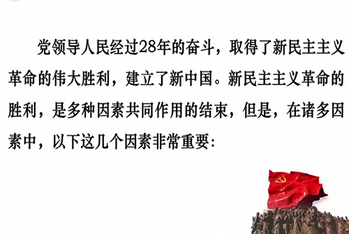 课程伊始,史越为同学们播放中共党史公开课《中国共产党在新民主主义革命时期的奋斗历程及启示》。课程向同学们介绍了新民主主义革命的主要历程,使同学们学习到中国共产党在新民主主义革命的各个历史阶段及取得的成就。本次课程主要从科学理论的引导、正确的方针政策、坚强有力的领导集体三个方面进行讲述,同学们从中学习到新民主主义革命是如何进行的,新民主主义革命是如何获取胜利的。课程最后,马小龙对本次课程进行总结,使同学们了解到中国共产党新民主主义革命的胜利对实现中华民族伟大复兴的重大意义。