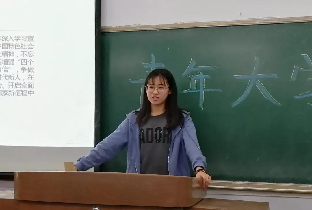 此次活动的目的是让同学们从学什么、怎么学两方面为重点对青年大学习的内容更深层次的理解,并希望在以后的学习中同学们可以学以致用。活动中,团支书徐佳纯强调:学习习近平新时代中国特色社会主义思想和十九大精神是我们当代青年重要知识积累的关键,在深入持久的学习中不断树立远大理想、开阔视野、明确目标,形成大格局,富有大智慧。