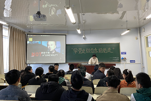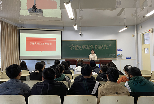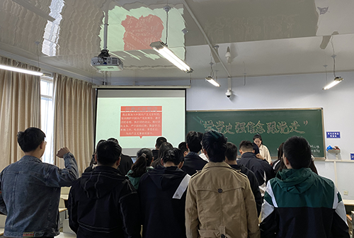 活动伊始,全体同学起立,主持人罗轶翾带领同学们一同朗读共青团宣誓词,通过重温入团宣誓词,唤起了同学们为中华民族伟大复兴而奋斗的意识。活动中,主持人罗轶翾为同学们讲解中国共产党伟大的奋斗历史,让同学们对党史有了更深的认识。随后,全体同学共同观看有关新疆反恐视频节选,同学们了解到如今的和平美好是一个又一个无私奉献的共产党员所共同创造的。活动最后,团支书杨洋对本次会议进行总结,并重点强调了党史的重要性,呼吁同学们认真学习党史。