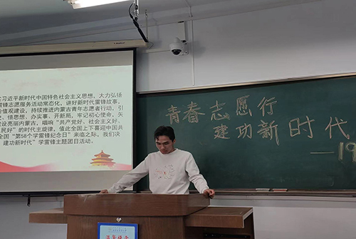 会议伊始,邓开福同学介绍本次活动的主要内容是为了深入贯彻落实习近平新时代中国特色社会主义思想,讲好新时代雷锋故事,弘扬雷锋精神。随后,邓开福同学组织同学们观看电影《雷锋》,了解雷锋从60年代部队大熔炉里锻炼成长起来一代道德楷模的故事。活动最后,班长邓开福表示,雷锋精神是全心全意为人民服务,是敢于钻研探索,是不计较个人利益的精神,希望同学们在日后的学习生活中,继续努力奋进、学习进取,大力弘扬雷锋精神。