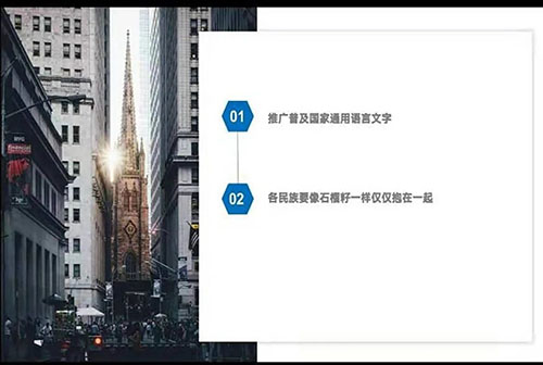 活动伊始,乌日斯哈乐同学为同学们推广“普及国家通用语言文字”这一内容,她表示“各民族要像石相籽一样紧紧抱在一起”两个大内容的演讲以及习主席语录。本次活动让同学们了解了国家统用文字的重要性,使同学们更深刻地了解到民族团结的重要。