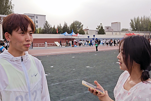 采访对象:男子员工组3000米竞走决赛第三名 散其日