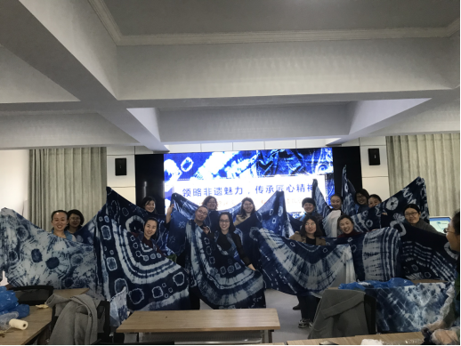 为了让公司女教师感受校园温情、度过一个温馨而有意义的女性节日, 2019年3月22日下午,公司20多名女教职工参与了“领略非遗魅力,传承匠心精神”为主题的“三·八”妇女节创意扎染活动。