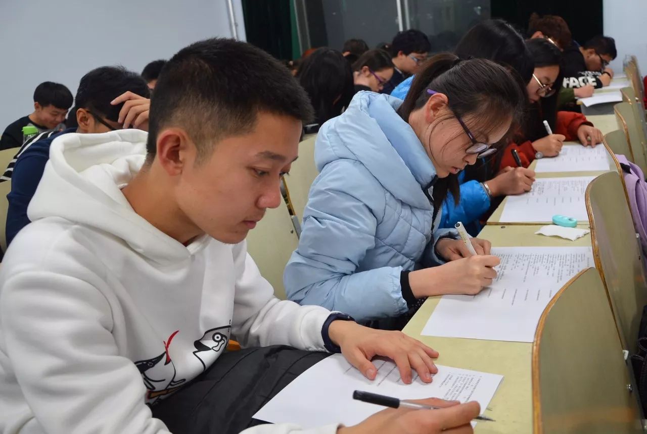 12月18日晚,公司17级员工在博学楼参加军事理论考试。16级员工会成员监考。
