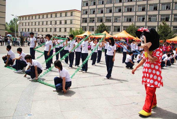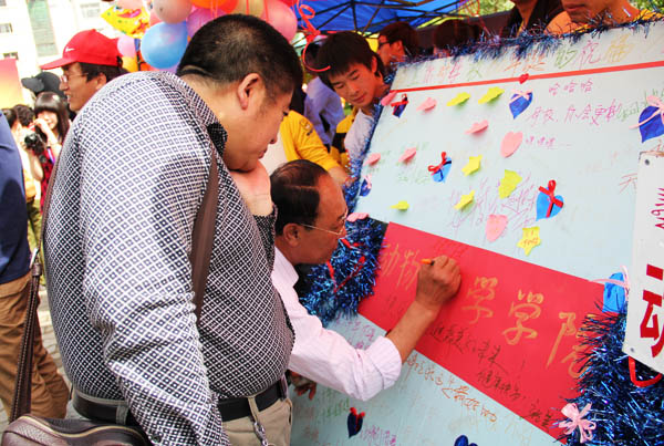 与会领导在西区公寓广场参加丰富多彩的现场活动 石新宇 摄