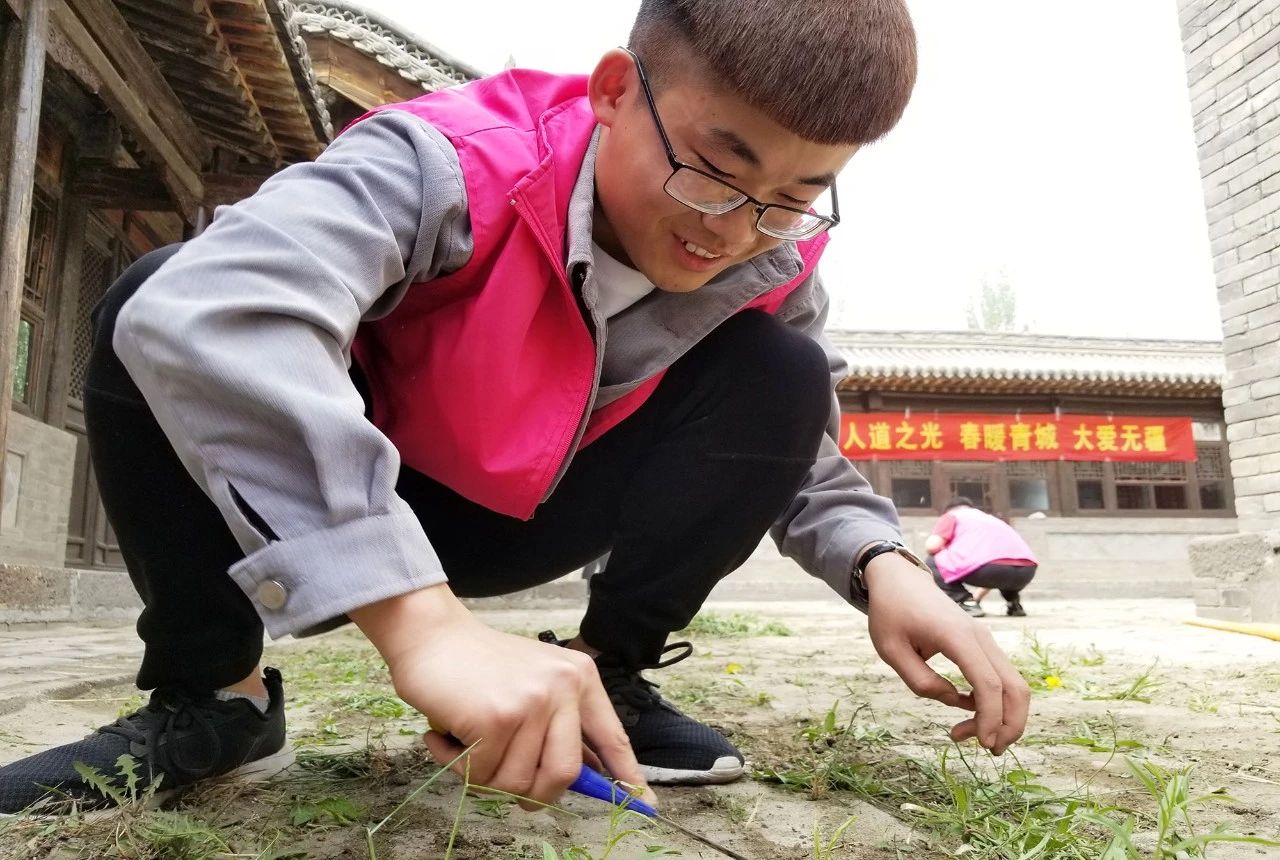 活动中,魏刚老师为大家分配任务,志愿者们随后就开始了有条不紊地工作。男同学们贴条幅,搬桌椅,擦桌椅,女同学们擦拭书架,整理书籍,大家共同打扫了教室和院子,让古色古香的书院散发了应有的色彩。当清洁工作结束,魏刚老师开始了公益宣讲,志愿者积极参与互动。魏老师讲了不忘初心跟党走,重温入党宣言,使志愿者们感触颇多,同时电视台记者记录下了这一光荣时刻。最后,全体志愿者在院子里合影留念,这次活动就此结束。