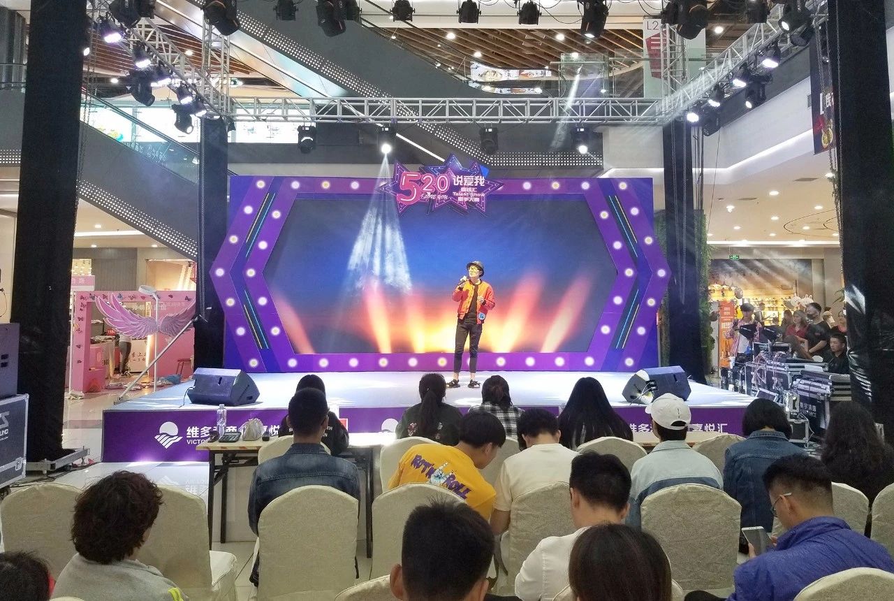 活动准备阶段,公司志愿者帮忙吹气球,做宣传,把气球送给路人,让观众扫描二维码并赠送精美礼品。活动开始志愿者们便开始接待选手,当上一位选手上台表演时立即安排下一位选手做准备。歌唱大赛的表演者有普通员工,商场导购,也有专业演员,其中有一位公司大一员工也参加了此次比赛,每个人都用声音将自己唱响,虽然并不专业,但与专业演员相比也毫不逊色,一次次精彩绝伦的歌唱让大家体会到了一场场听觉的盛宴。随着表演的进行,现场来了一位将《呼和浩特》唱红的网络红人上官大叔,也一度将现场气氛带向高潮。最后由上官大叔做出点评,比赛到此结束。