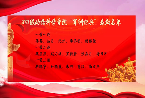 会议伊始,马晓莺表明本次军训公司367名同学全部顺利完成军训全部课程内容,经过各连队指导员、连长的层层考核,最终评选出15名军训标兵,并根据其表现情况进行表彰。随后,全体参会人员起立并奏唱国歌。期间,斯日古楞、张燕军、苏蕊分别宣布一营一连、二连、三连标兵名单,希望同学们保持刻苦训练、毫不怠慢的优良作风及良好的精神面貌,掌握基本军事知识和技能,增强国防观念。会议中,一营一连21级动科6班伟其同学、一营二连21级动科2班赵力格同学、一营三连21级水产2班朱旭同学分别作为“军训标兵”代表、“单兵队列标兵”代表、“内务标兵”代表进行发言。他们纷纷表达在军训中的感悟,提到在军训中增强了组织纪律观念和集体主义意识,培养了良好的生活习惯,思想政治觉悟得到了提高。随后,包国荣对本次会议进行总结,希望同学们把在军训中形成的好习惯,学习的好思想、好作风贯彻到学习生活中去,切实提高自我的综合素质,德智体美劳全面发展,坚持发扬艰苦奋斗,刻苦耐劳的坚强毅力和集体主义精神。会议最后,全体参会人员起立并奏唱校歌。