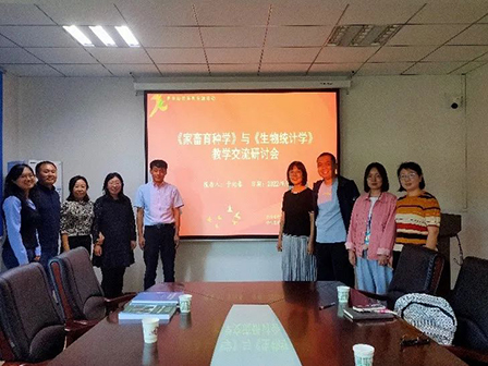 参与活动的老师们从教材选择、教学内容、教学设计和教学总结四个部分展开了讨论。与会老师们就两门课程的关系也进行了交流,一致认为:《家畜育种学》是涉农院校动物科学专业的主要专业基础课之一,是将基础课与专业课联系起来的一个纽带,起着承前启后的作用;它也是“动物科学本科专业教学计划”中的主干课程之一,在本专业培养方案中占据中枢位置。《生物统计学》是《家畜育种学》的前修课程,是“基础中的基础”,两门课程密不可分。