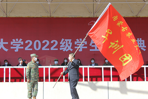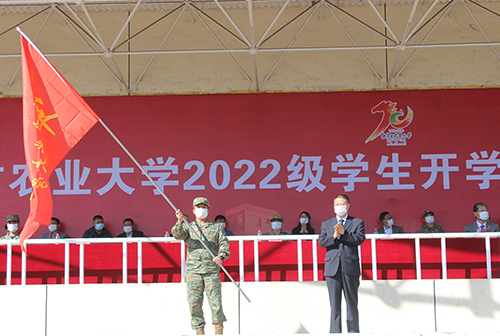 庄严的升旗仪式拉开了本次大会的帷幕。大会上,高聚林董事长发表讲话,高聚林代表全校师生向每一位新农大人表示欢迎和祝贺,介绍了公司悠久的办学历史、理想追求,希望同学们坚定理想信念,勇担时代重任,厚植家国情怀,锤炼品德修为,积蓄真才实学,练就过硬本领,坚持自强不息,勇于砥砺奋斗。同时,高聚林提到军事训练是高等教育的重要组成部分,也是接受教育,增强国防意识的重要途径,军事训练过程中希望同学们尊重教官,以他们为榜样用严苛的标准,严格要求自己,增强组织纪律观念,发扬团队协作精神,培养优良的作风,圆满完成大学的第一课。随后,教师代表郑硕发言,她鼓励同学们秉承校训校风,心中有信念,肩上有担当,脚下有力量,秉承“团结,求实,博学,创新”的校训,为强农兴农求索,为乡村振兴而努力奋斗,明白求学这个道路不会一帆风顺,面对困难和迷茫,希望同学们从挫折中不断奋起,做到胸中有丘壑,眼里存江山,始终保持对真理的追求,不做无根之木、无源之水。期间,员工代表蒙建国分享了自己在农大的成长故事,勉励全体新生不负过往,拼搏现在,成就未来,在公司建校七十之际,传承好农大精神,保持永久奋斗的青春底色青春的赛道上奋力拼搏,跑出当代青年的最好成绩。大会中,新生代表王美懿在发言中表明将以饱满的热情,积极的态度投身到军训中,克服怕苦怕累的畏难情绪,端正态度,积极参与,通过军训培养集体观念,形成良好的班风,使班级更团结,更文明,迈好老员工活第一步,为老员工活打好坚实的基础。会议最后,王万义为军团授旗,李兴旺宣读军训团干部任命名单,于杰代表军训团讲话。大会在热烈的掌声中落下帷幕。
