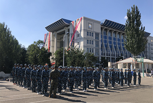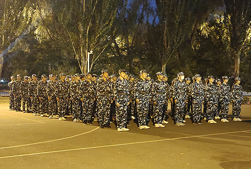 当天下午,新生进行继续练习,巩固队列动作与整理仪容,教官们也认真的为同学们进行动作示范,使同学们对训练内容有了更加深刻的认识。